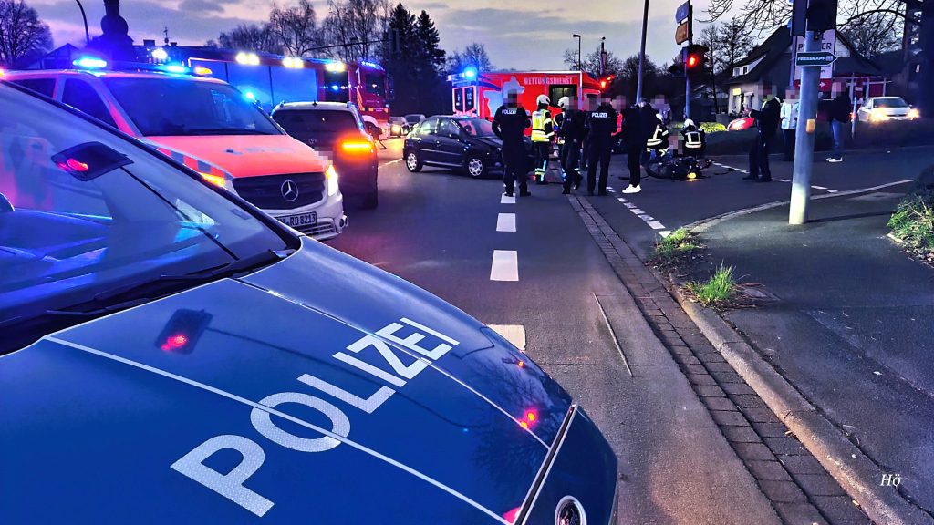 „Wir hatten Grün, der Fahrer des Motorrades fuhr vor mir her und ich sah, wie er von dem uns entgegenkommenden links abbiegenden Auto erfasst wurde“, sagte ein Zeuge zu unserem Einsatzreporter an der Unfallstelle. Der 18-jährige Fahrer des Pkw erlitt einen Schock und musste betreut werden.