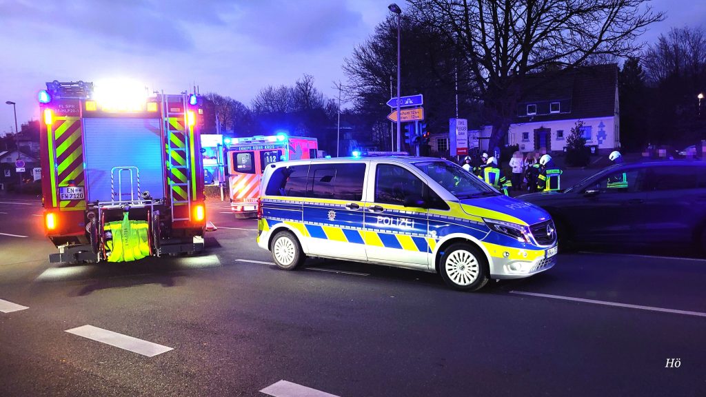 Sprockhövel – Am heutigen Samstagabend (15. März 2025) ereignete sich kurz nach 18:30 Uhr ein Verkehrsunfall auf der Bochumer Straße /Einmündung Gewerbegebiet Penny/Trinkgut.