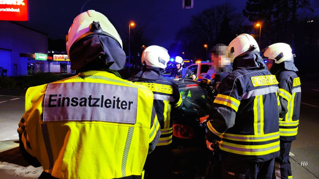 Die ehrenamtlichen Frauen und Männer des Löschzuges Niedersprockhövel stellten den Brandschutz sicher, klemmten die Autobatterie ab und streuten auch ausgelaufene Betriebsmittel ab.
