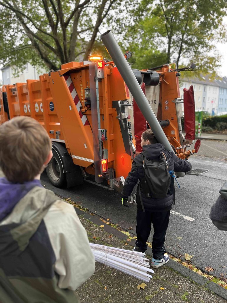 So auch die Klasse 6a mit Klassenlehrerin Anna Brandt und Klassenlehrer Armin Wollnitza. „Die Kinder haben im Vorfeld festgestellt, dass in der Stadt viel Müll liegt und wollten aktiv etwas dagegen tun“, so Anna Brandt. „Sie finden es schöner, wenn Hattingen sauber ist – das war eine große Motivation.“ Ausgerüstet mit Greifzangen, Handschuhen und Müllsäcken, die von der Stadt bereitgestellt wurden, sammelten die Kinder auf ihrem Weg von der Schule bis in die Innenstadt allerhand Fundstücke: von Pfandflaschen über Kleiderbügel und ein Plastikrohr bis hin zu einer alten Klappmatratze. Ein besonderes Highlight war für die Kinder der Besuch des Müllsammelfahrzeugs am Rathaus, das den gesammelten Abfall abholte. „Ich unterstütze solche Aktionen immer gern – es macht Spaß zu sehen, mit welchem Engagement die Kinder dabei sind“, sagt Cornelia Padtberg.