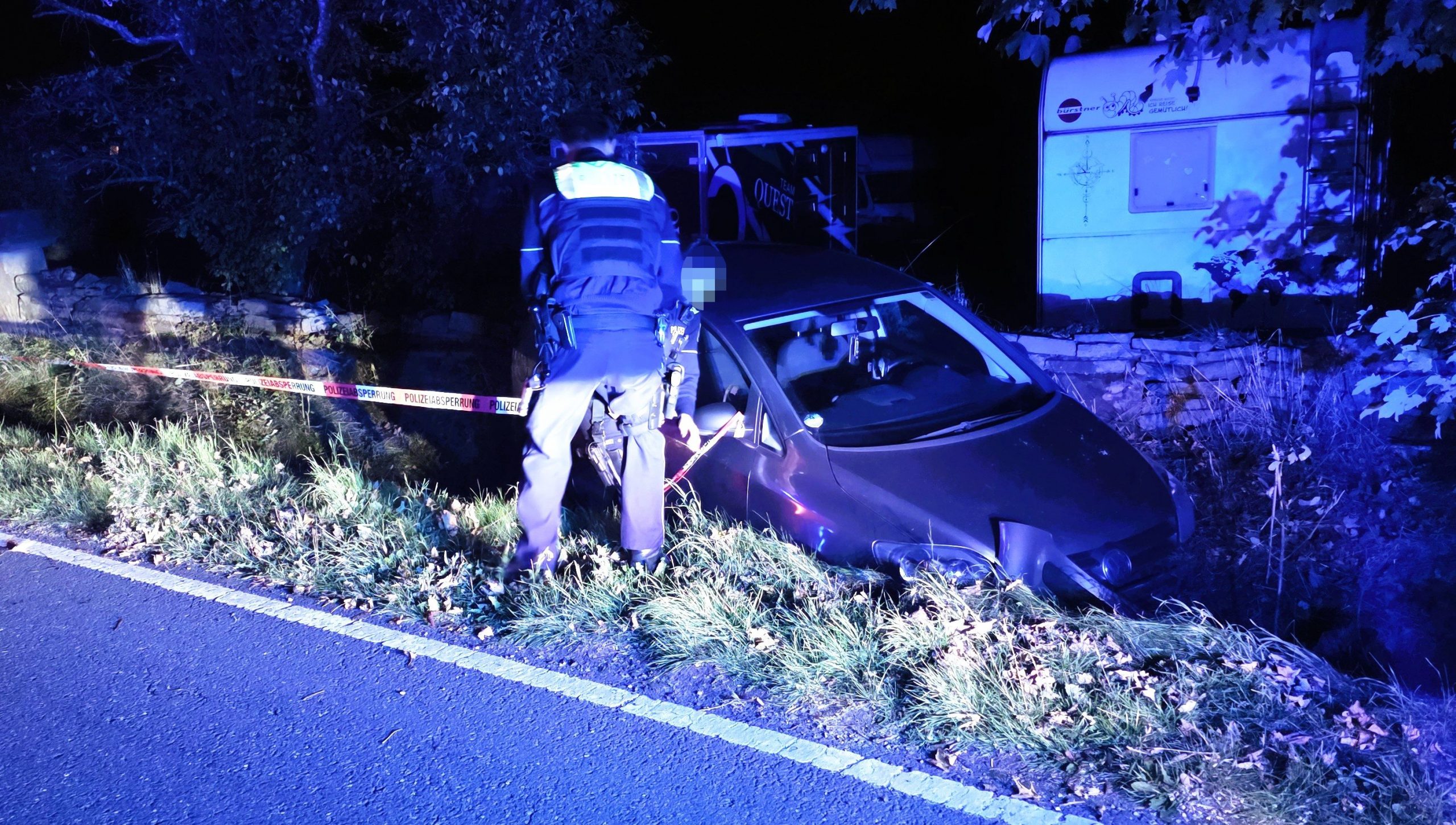 Der PKW wurde bei dem Unfall beschädigt, die Polizei sperrte den Bereich ab, der PKW wurde später aus dem Graben abgeschleppt.