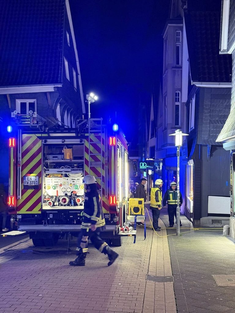 Da zunächst von einem Brand in einer Wohnung ausgegangen werden musste, alarmierte die Leitstelle die Einsatzkräfte mit dem Stichwort „Brand im Gebäude“. Neben dem hauptamtlichen Löschzug rückten auch der Löschzug Mitte und die Schutzzielergänzungseinheiten Nord, Oberbredenscheid und Niederwenigern zur Einsatzstelle aus.