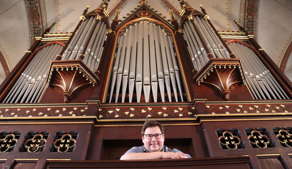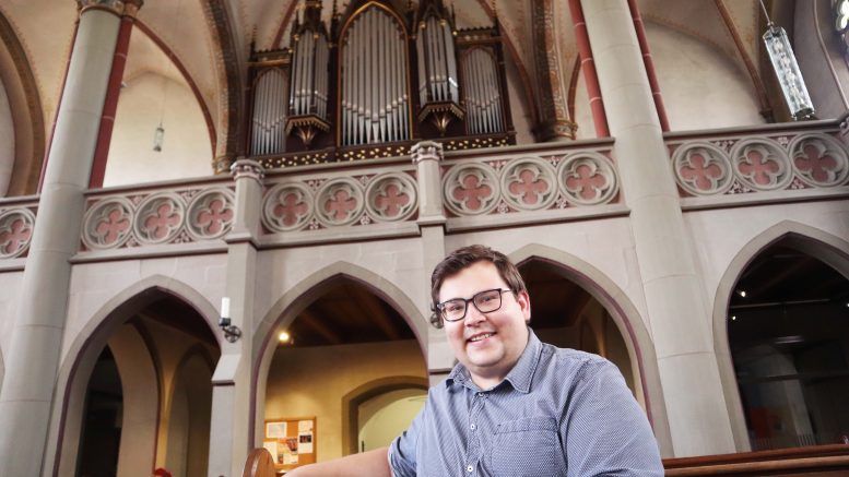 Moritz Unger an der Stahlhuth-Orgel in St. Mauritius – ein ganz besonderes Instrument. (Foto: Claudia Kook)