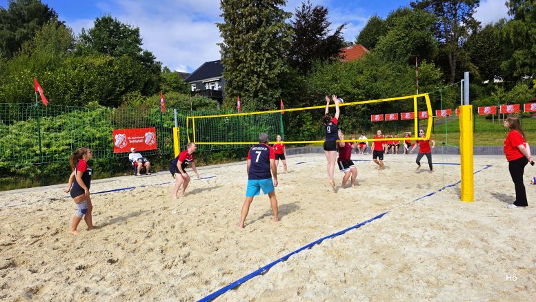 Zwei Tage lang finden jetzt an diesem Wochenende entprechende Turniere statt. Sieben Mannschaften messen sich am heutigen Samstag, auch am morgigen Sonntag (31. August) finden weitere Spiele statt. Interessierte Sportlerinnen und Sportler, die zukünftig gerne mit Beach-Volleyball spielen möchten, können sich gerne noch beim VFL Gennebreck melden.