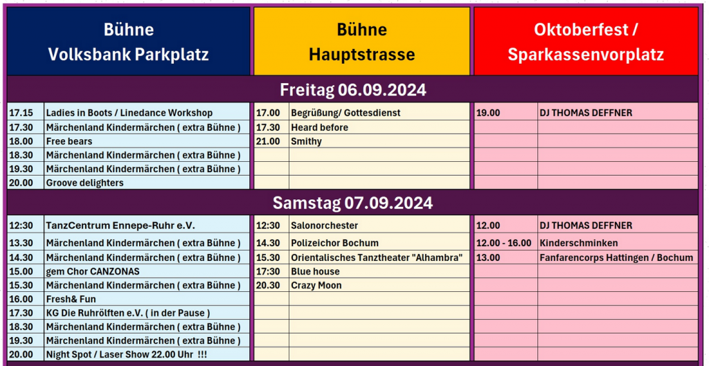 Von Freitag, 06. September bis Sonntag, 08. September, findet auf der Hauptstraße in Niedersprockhövel das Stadtfest 2024 statt. Veranstalterin Frauke Schittek hat mit ihrem Organisationsteam ein umfangreiches Programm erarbeitet.