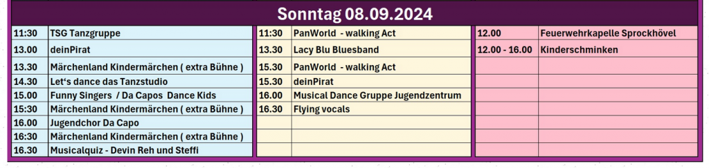 Für den letzten Tag des Stadtfestes, den Sonntag, 08. September, ist folgendes Programm geplant: