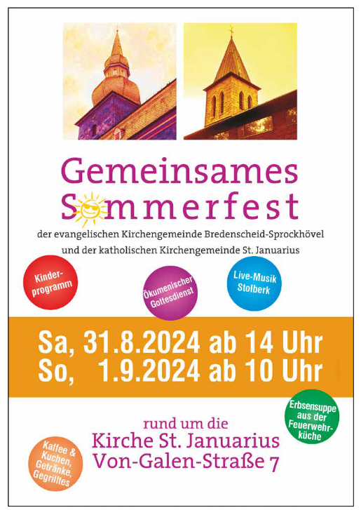 Auf dem Kirchengelände von St. Januarius auf der Von-Galen-Straße findet am kommenden Samstag und Sonntag wieder das ökumenische Sommerfest mit der evangelischen Kirche statt.