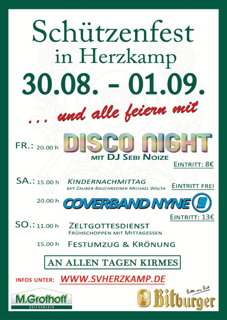- 15:00 Uhr: Großer Festumzug durch Herzkamp, anschl. Königskrönung im Festzelt