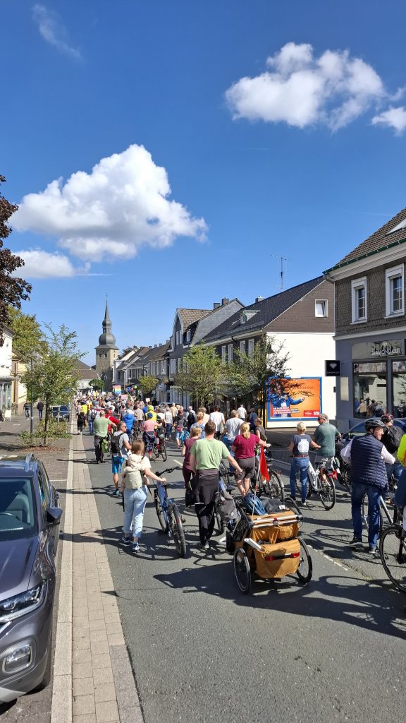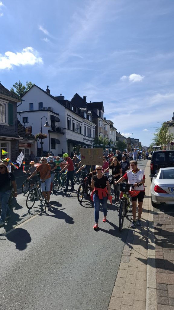 Heute startete eine diesbezüglich unterstützende Fahrrad-Demo in Haßlinghausen am Rathaus und fuhr Richtung Niedersprockhövel. Eine Fußgänger-Demo startete vom Schulhof der Mathilde-Anneke-Schule. Beide Demo-Züge trafen dann zusammen und gingen auf der Hauptstraße gemeinsam zum KiFaz am Busbahnhof zur Abschlusskundgebung.