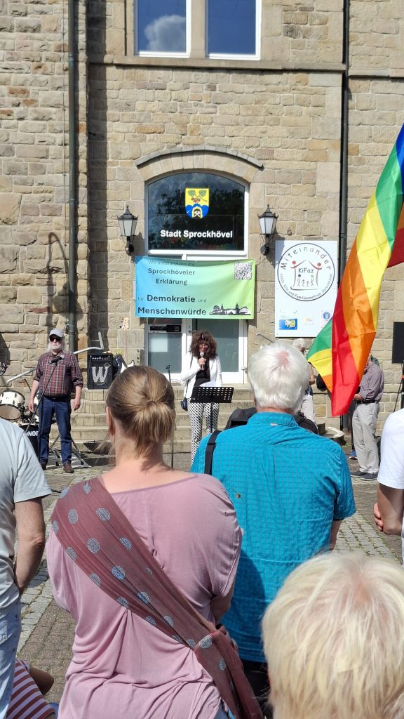 Die Abschlusskundgebung wurde abwechslungsreich mit musikalischer Darbietung gestaltet. Die einzelnen Rednerinnen und Redner betonten die Wichtigkeit der Inhalte der Sprockhöveler Erklärung.