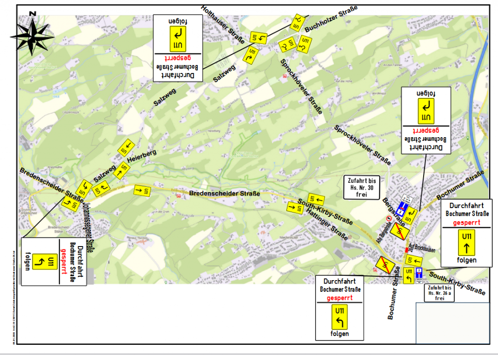 Bei einer Ortsbesichtigung veranlasste die Polizei bei der Stadtverwaltung, dass die Beschilderung auf der Bochumer Straße zeitnah angepasst wird. Das vorgegebene Geradeaus-Schild wird abgedeckt, ein Umleitungsschild aufgestellt, damit Verkehrsteilnehmer über die durchgezogene Linie nach links auf die Alte Bergstraße abbiegen dürfen. Die Ratlosigkeit einiger Verkehrsteilnehmer war am heutigen Morgen vor Ort erkennbar.