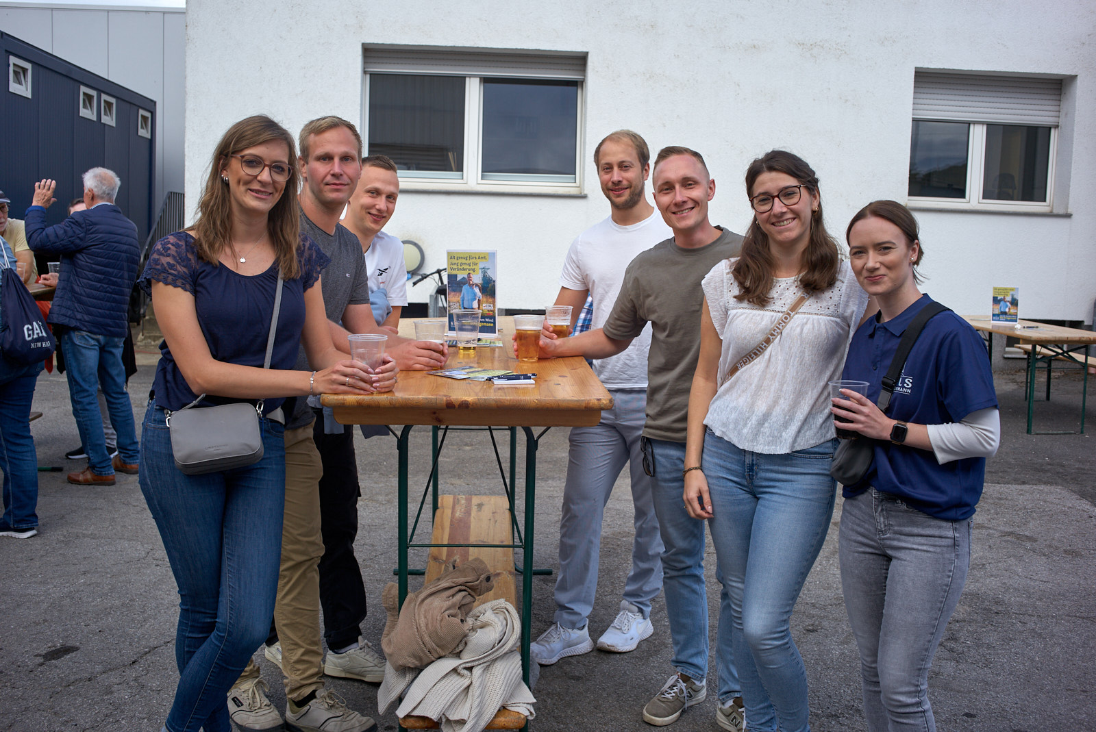 Als der Regen einsetzte, zog die Gesellschaft kurzerhand in die angrenzende Halle um. Der Stimmung tat das keinen Abbruch. Im Gegenteil, noch dichter beieinander, noch intensiver im Gespräch, wurde bis in den Abend diskutiert und gelacht. Und ja, es war genug Bratwurst am Start.