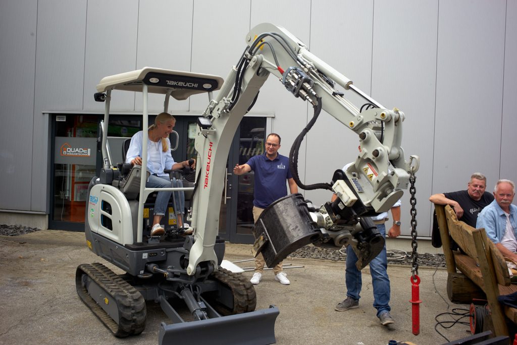 Pauli’s Baumaschinen-Fuhrpark. Sogar ein kleiner Bagger war Einsatzbereit und wurde für eine Schulung genutzt. Die Neugier war groß, nicht nur bei den Herren. Auch Dr. Katja Strauss-Köster, CDU Bundestagsabgeordnete, setzte sich an die Joysticks und meisterte die Testaufgabe mit Bravour.