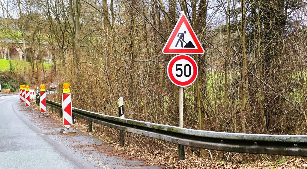 Wochenlang war seit November 2024 eine kurze Stelle durch Baken abgesichert, dann war die Absperrung kurzzeitig verschwunden – kurze Zeit später war die Absperrung in Fahrtrichtung Hattingen wieder da und deutlicher sichtbarer.