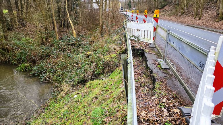 „Es handelt sich bei dieser Stelle um einen kleinen Fahrbahnabbruch oberhalb des Sprockhöveler Baches“, erklärte Pressesprecher Andreas Berg von StraßenNRW bereits im November 2024 auf Nachfrage unseres Reporters.
