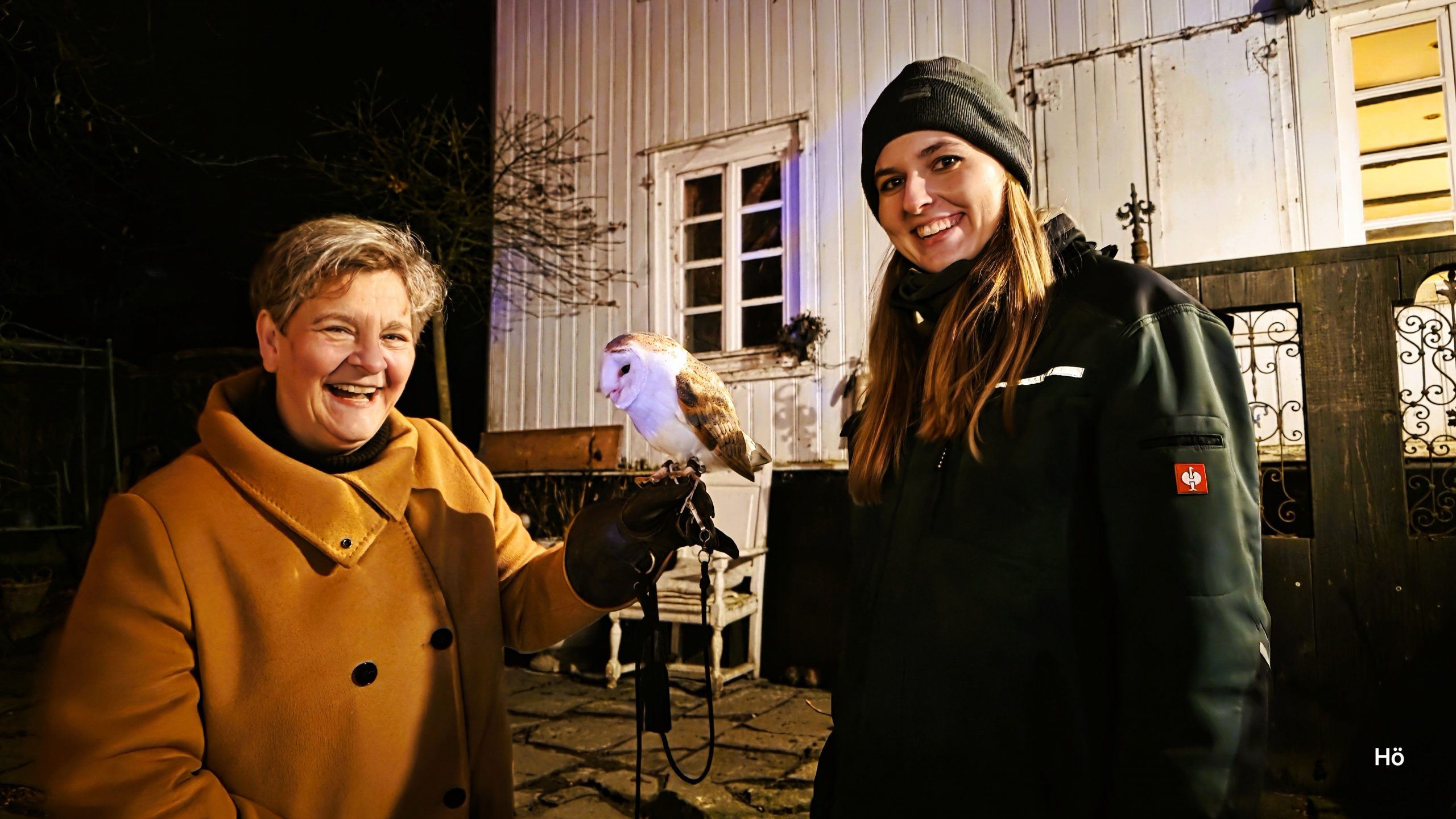 Paasmühle: Auch Hattingens Stadtoberhaupt, Bürgermeisterin Melanie Witte-Lonsing (SPD) (li.) war unter den Besuchern, hier mit Falknerin Rebecca. (Foto: Höffken)