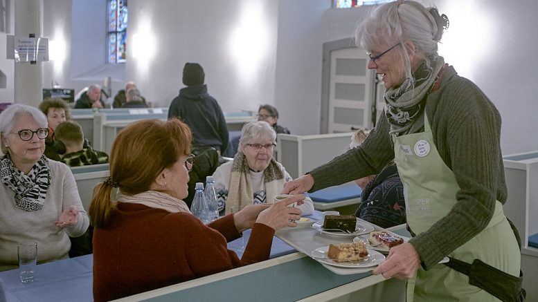Die Stammgäste kommen bevorzugt um 13 Uhr. Nach dem Essen gibt’s Musik von der Musikschule, und wer möchte, kann länger sitzen bleiben. Und genau da passiert das, was man nicht planen kann: Gespräche bleiben nicht an der Oberfläche. Hier ist mehr als der kurze Plausch an der Supermarktkasse, der einem für sieben Tage reichen muss. Hier sitzen überall Zuhörer – und aus vielen Einzelnen wird für ein paar Stunden etwas, das man sonst kaum noch erlebt: Gemeinschaft. Eine Gemeinde.