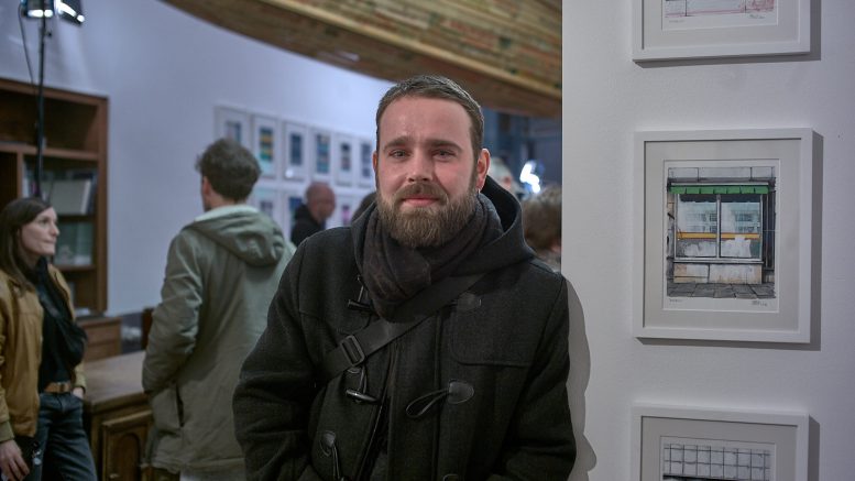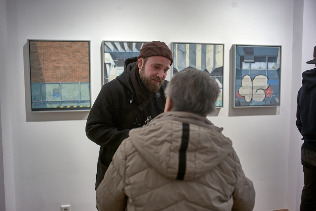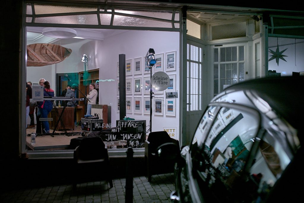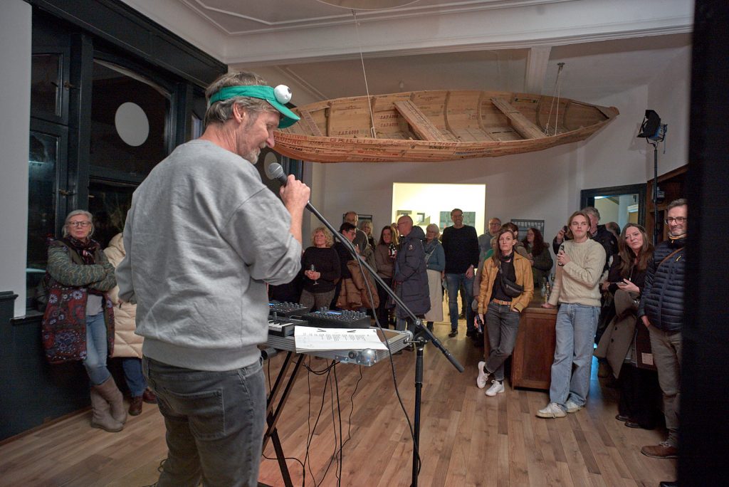 Für den musikalischen Part der Vernissage sorgte Markus Hoppe alias „Die Norm“. Der Musiker aus Köln bot eine Klangwelt, die ebenso vielschichtig war wie Jansens Bilder. Seine Musik mischte elektronische Pop-Rhythmen der 90er mit Melodien, die an die Neue Deutsche Welle erinnerten. Doch wer versuchte, sie in eine Schublade zu stecken, musste schnell feststellen: Auch hier wurde mit Erwartungen gespielt. Was zunächst vertraut klang, entfaltete sich plötzlich in unerwartete Richtungen.