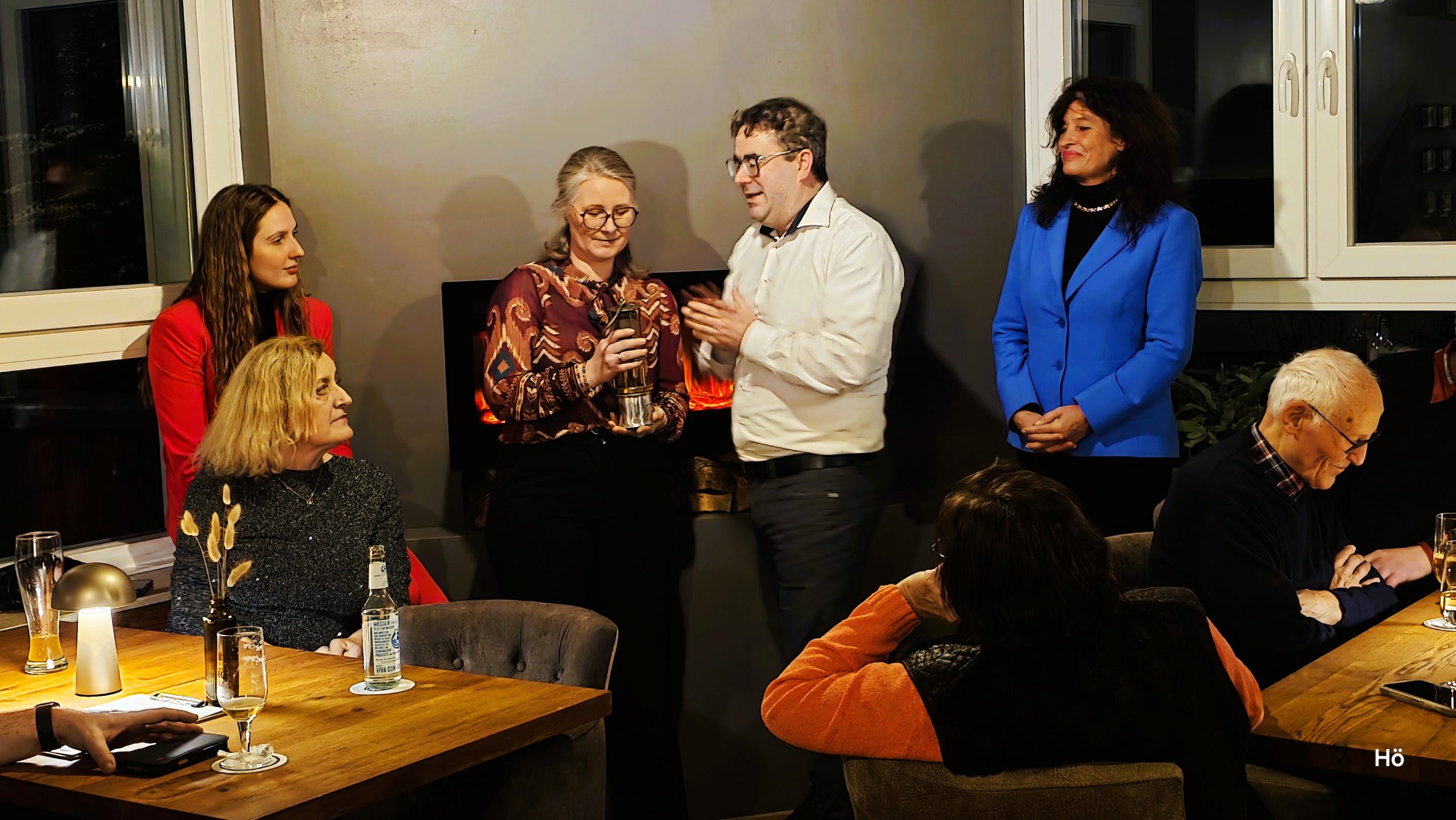 Veranstalter Ronald Mayer überreichte dann noch Meike Große-Herzbruch, Inhaberin der Hofbar Haßlinghausen, eine besondere Grubenlampe. Das war Anerkennung und Dank dafür, dass die Hofbar am gestrigen Tage exklusiv vorzeitig für die FDP-Veranstaltung die neugestalteten Räume zur Verfügung gestellt hatte. Gemeinsam ging es dann zum Grünkohl-Buffet.
