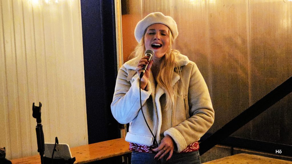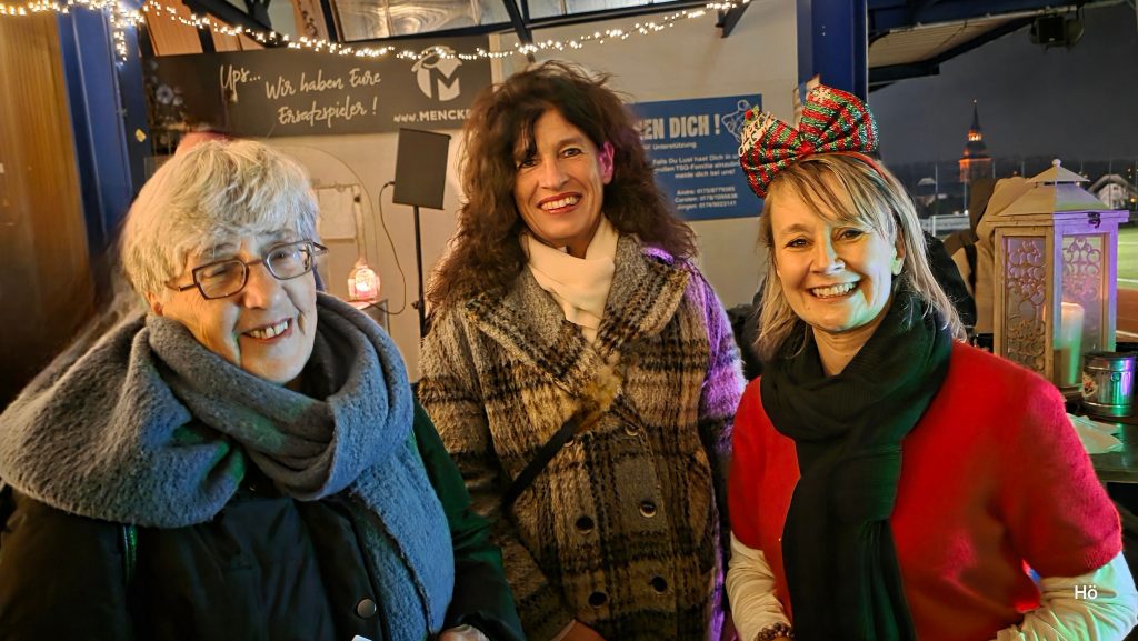 Und dann stimmte Sängerin Annika Peters die Lieder an und die erschienenen Fans der TSG sangen mit. Für das leibliche Wohl war gesorgt und Glühwein, Kinderpunsch, Kakao, Bratwurst und leckere Kekse wurden angeboten. Die Einnahmen aus dem Verkauf, so der Veranstalter, werden dem Kinderhospizdienst Ruhrgebiet e.V. gespendet.