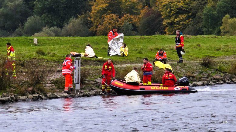 DRK-DLRG-Einsatz: Ein angenommener Zusammenprall mehrere Kanuten war Gegenstand einer großen Rettungsübung an der Ruhr: (Foto: Höffken)