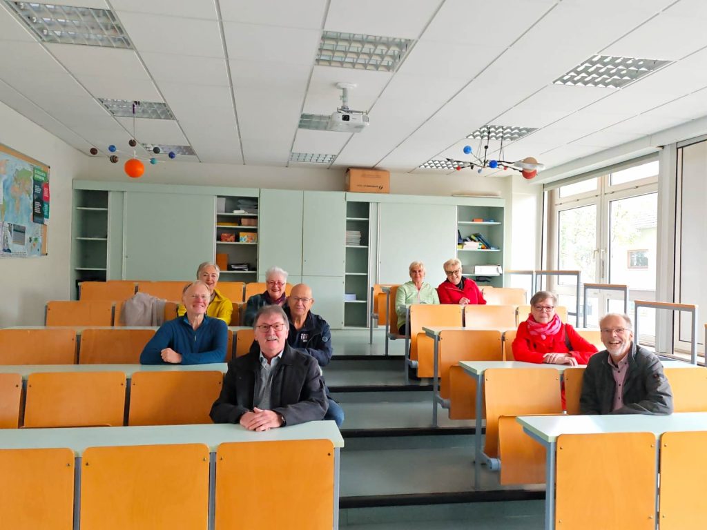 Neun Ehemalige, kein Lehrer im Physikraum der Realschule Grünstraße (Foto: privat)
