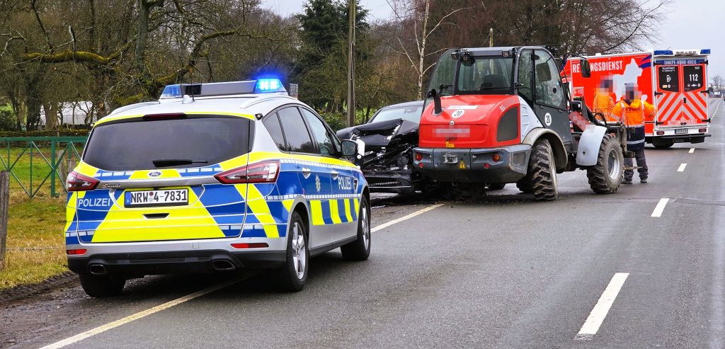 Sprockhövel – Zu einem Verkehrsunfall wurden am heutigen Dienstagmittag (10. Februar 2026) Kräfte des Rettungsdienstes, der Feuerwehr und der Polizei zur Elberfelder Straße nach Herzkamp alarmiert. Ein Radlader war mit einem Pkw zusammengestoßen.