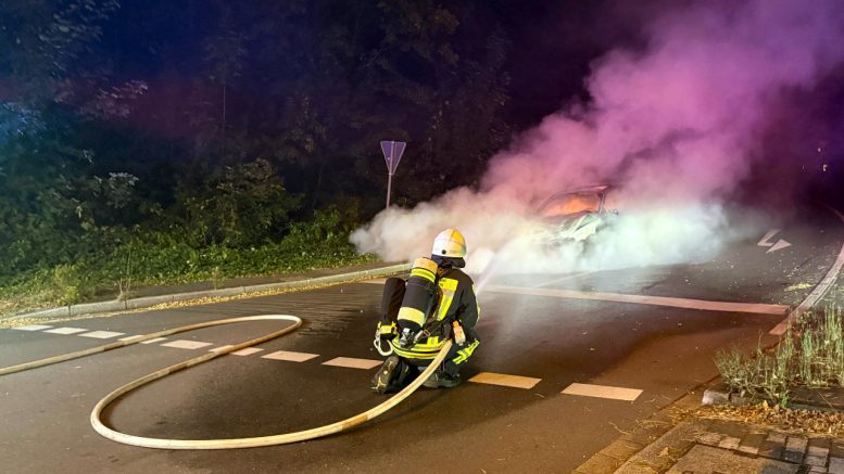 Hattingen – Am Samstagabend (20. 9.2025), gegen 23.20 Uhr, kam es im Kreuzungsbereich „Am Büchsenschütz / An der Hunsebeck“ zu einem Fahrzeugbrand.