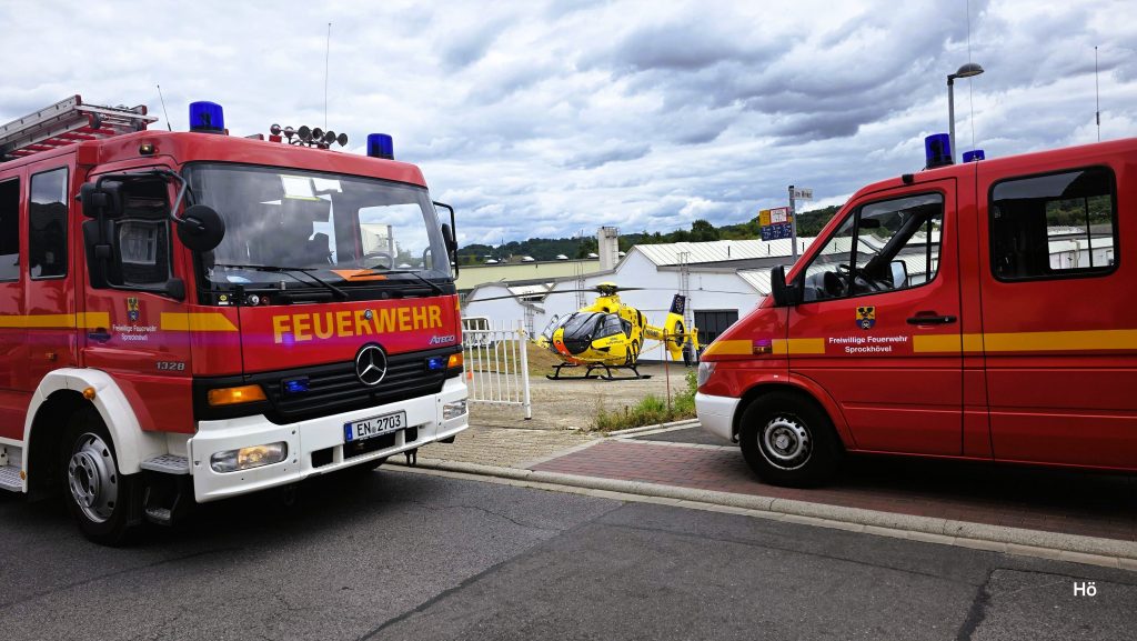 Sprockhövel – Am heutigen Freitagmittag ( 22. August 2025) gab es gegen 12:30 Uhr eine „Alarmdepesche“ für ehrenamtliche Feuerwehrkräfte des Löschzuges Niedersprockhövel und der Löschgruppe Obersprockhövel. Der Einsatz des Rettungstransporthubschraubers (RTH) „Christoph 8“ musste abgesichert werden.