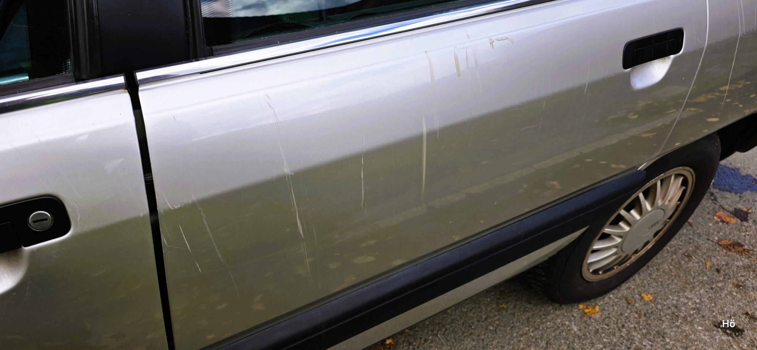 Glück im Unglück hatte der Fahrer eines Pkw, dessen Fahrzeug auf der Kleinbeckstraße von der umstürzenden Birke nur gestreift wurde. Die Kräfte der Polizei dokumentierten die Beschädigung am Auto.