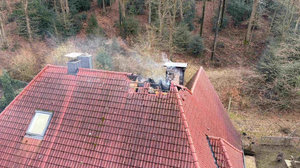 Feuerwehreinsatz: Die Drohnenstaffel der Feuerwehr Witten unterstützte die Kräfte der Feuerwehr Sprockhövel bei diesem Dachstuhlbrand. (Foto: Feuerwehr Sprockhövel)