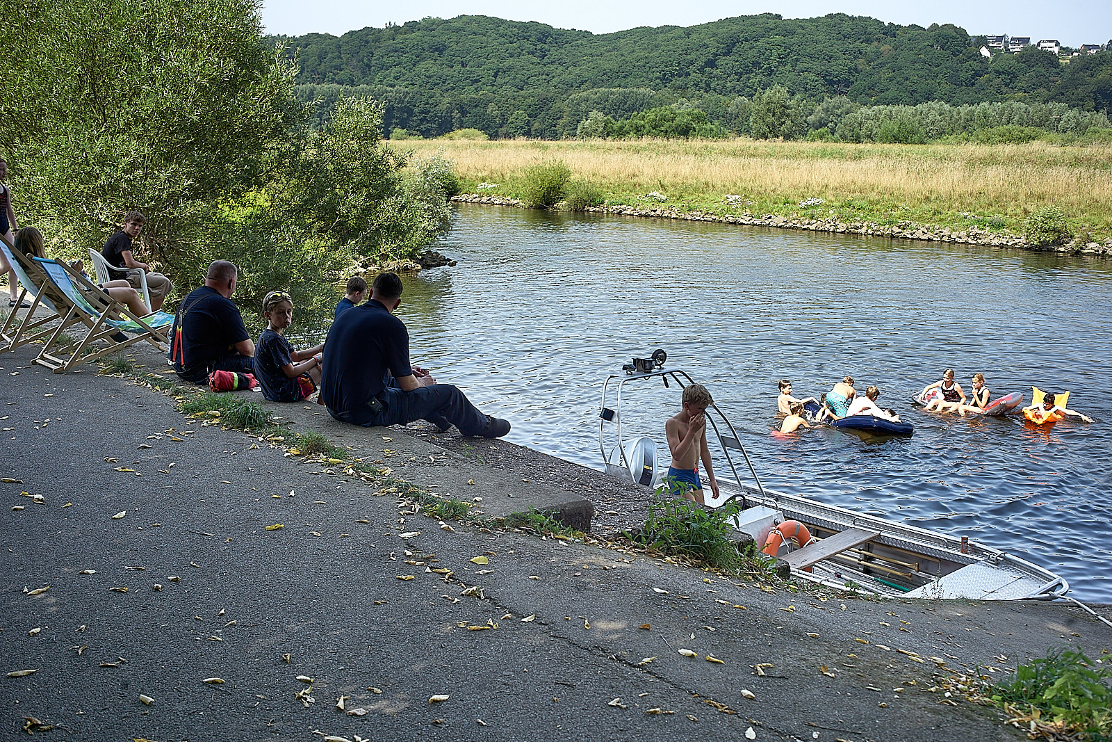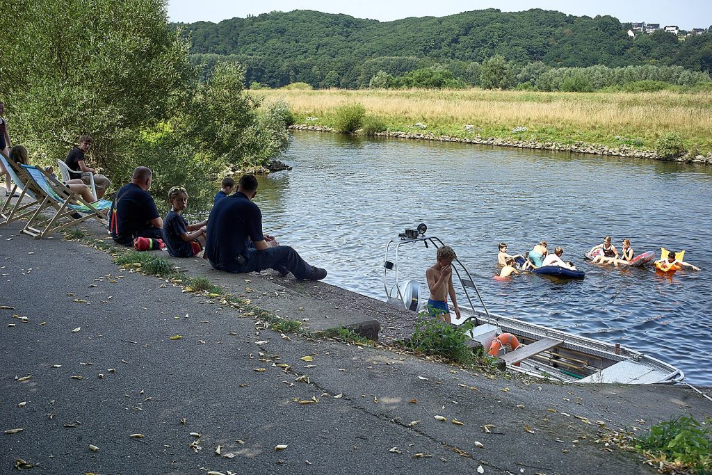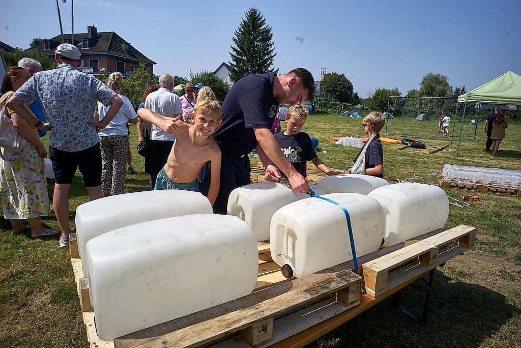 Als die Paletten knapp wurden, reichte ein Anruf bei der Spedition Kerkemeier – Problem gelöst, Material geliefert. Parallel zeigte die DLRG Hattingen-Blankenstein, wie man in einer Strömung schwimmt und sich daraus befreit. Für viele eine prägende Erfahrung.