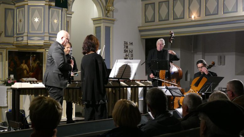 Die besondere Besetzung des Abends war ein weiterer Höhepunkt des Konzerts. Frank Christmann (Klarinette), Silke Frederichs (Violine), Jonas Wolf (Violoncello), Bernd Johannes Wolf (Kontrabass), Pavel Beliaev (Marimbaphon) und Michael Kemper an der Orgel eröffneten einen dynamischen Klangraum, der die Zuhörer in seinen Bann zog. Besonders hervorzuheben ist die markante Handschrift von Bernd Wolf, der nicht nur als Komponist und Arrangeur brillierte, sondern auch jahrzehntelange Erfahrung in der Musikpädagogik und der Leitung zahlreicher Kammermusik- und Jazzformationen mitbringt. Seine Kammeroper „Des Bösen gelbe Schwefellichter“, die 2023 zur Erinnerung an die Hattinger Progromnacht 1938 realisiert wurde und mit dem Heimatpreis ausgezeichnet wurde, ist nur ein Beispiel seines tiefen Engagements für die Kultur in Hattingen.