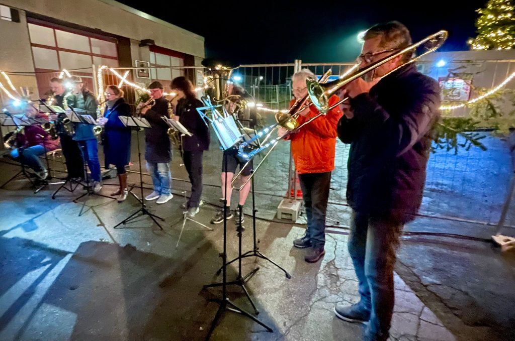 Hiddinghauser Weihnachtsmarkt: Zum Mitsingen spielte auch eine Auswahl des Musikzuges der Feuerwehr auf. (Foto: Privat-M.G.)
