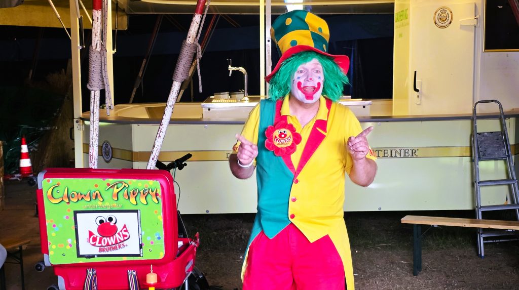 Beim Kindernachmittag am Sonntag ( 06. Juli 2025) erforderte das regnerische Wetter die Verlagerung der Kinderbespaßung in das Zirkuszelt. Und so hörte man schon von weitem Kinderlachen, als der Clown seine Späße machte und ihn die Kinder begeistert anfeuerten bzw. unterstützten.