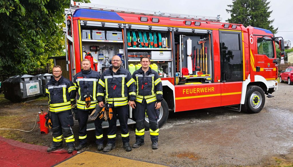 Die ehrenamtlichen Männer der Löschgruppe Obersprockhövel waren dann noch mit einem Einsatzwagen vor Ort, um den Kindern „Feuerwehr zum Anfassen“ zu präsentieren.