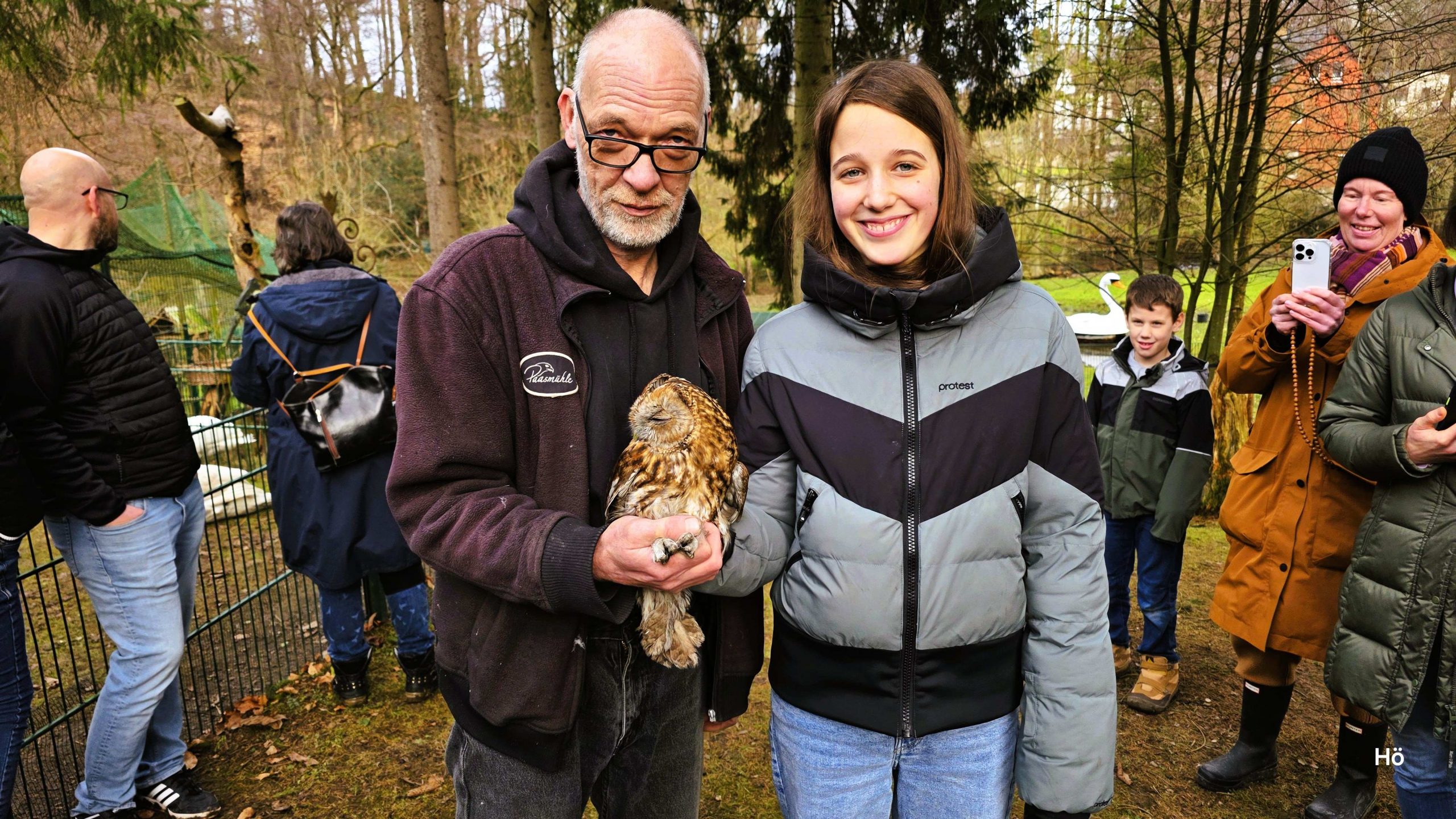 Und so hörte man manch unterschiedliche Rufe aus den Kehlen der Turmfalken, Waldkäuze und Bussarde, kurz nachdem sie heute auf dem Gelände der Paasmühle wieder in die Freiheit entlassen wurden – ein majestätischer Anblick, wenn diese großen Greifvögel in die Freiheit entschweben.