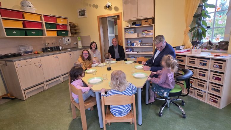 Und so haben die Kinder jetzt wieder tolle Sitz- und Aufenthaltsmöbel, neue moderne und praktische Schränke und auch in der Küche können die kleinen Küchenhelferinnen und -helfer auf einem ausziehbaren Sockel stehen, um mitzuhelfen.