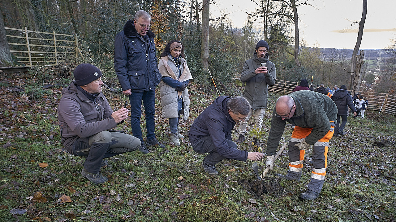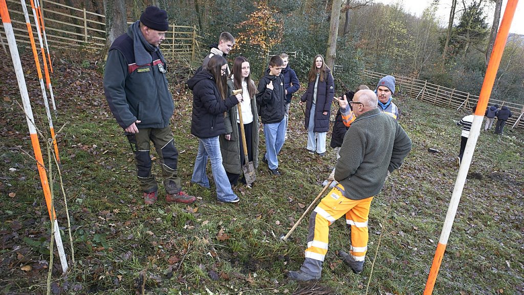 Unter der fachkundigen Anleitung von Revierförster Thomas Jansen und den Experten der Stadtbetriebe setzten die Jugendlichen kleine Speierlinge und Mammutbäume in die Erde, um den heimischen Buchenwald in einen widerstandsfähigeren Mischwald zu verwandeln. „Es ist erfreulich zu sehen, wie die junge Generation aktiv für den Hattinger Wald arbeitet und sich für dessen nachhaltige Erhaltung einsetzt“, sagt Rainer Sommer, stellvertretender Bürgermeister der Stadt Hattingen, und bedankt sich bei allen Beteiligten.