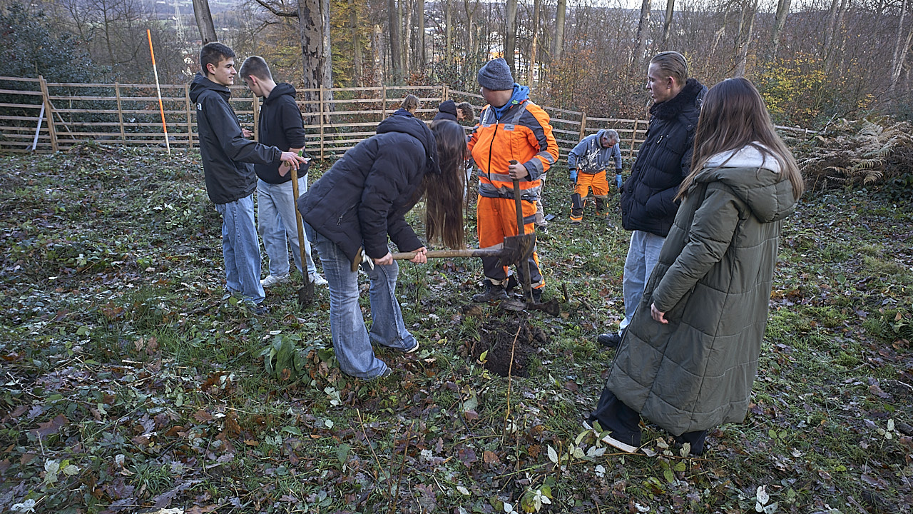„Dieses Projekt soll unseren Wald bestmöglich dabei unterstützen, mit den Klimaveränderungen zurechtzukommen und gleichzeitig die Jugend für das Thema zu sensibilisieren“, erklärt Thomas Alexander, Marketingleiter der Volksbank Sprockhövel. Auch in Hattingen sind die heimischen Wälder durch die Folgen des Klimawandels gefährdet. Daher entschieden sich rund 20 Schülerinnen und Schüler des Wahlpflichtfaches Biologie, gezielt ausgewählte Baumarten zu pflanzen, die sich besser an die klimatischen Bedingungen vor Ort anpassen können.
