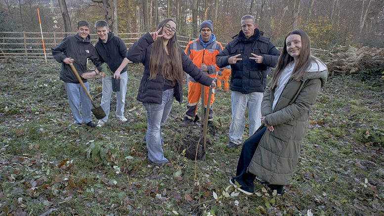 Jugendliche erweitern Bauminsel im Schulenberger Wald