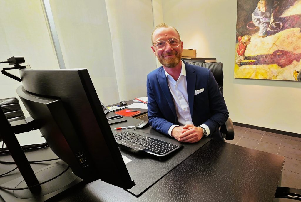 Sparkasse Schwelm-Sprockhövel: Vorstandsmitglied Daniel Rasche an seinem Schreibtisch. (Foto: Höffken)