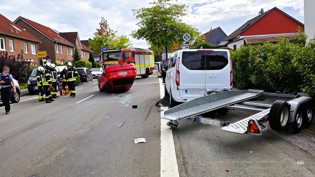 Sprockhövel – Am heutigen Freitag (12. September 2025) wurde die Feuerwehr Sprockhövel gegen 15.55 Uhr zu einem Verkehrsunfall auf der Schmiedestraße alarmiert. Dort war ein 42-Jähriger Fahrer eines Pkw nach rechts von der Fahrbahn abgekommen und mit einem auf dem Seitenstreifen geparkten Anhänger kollidiert.