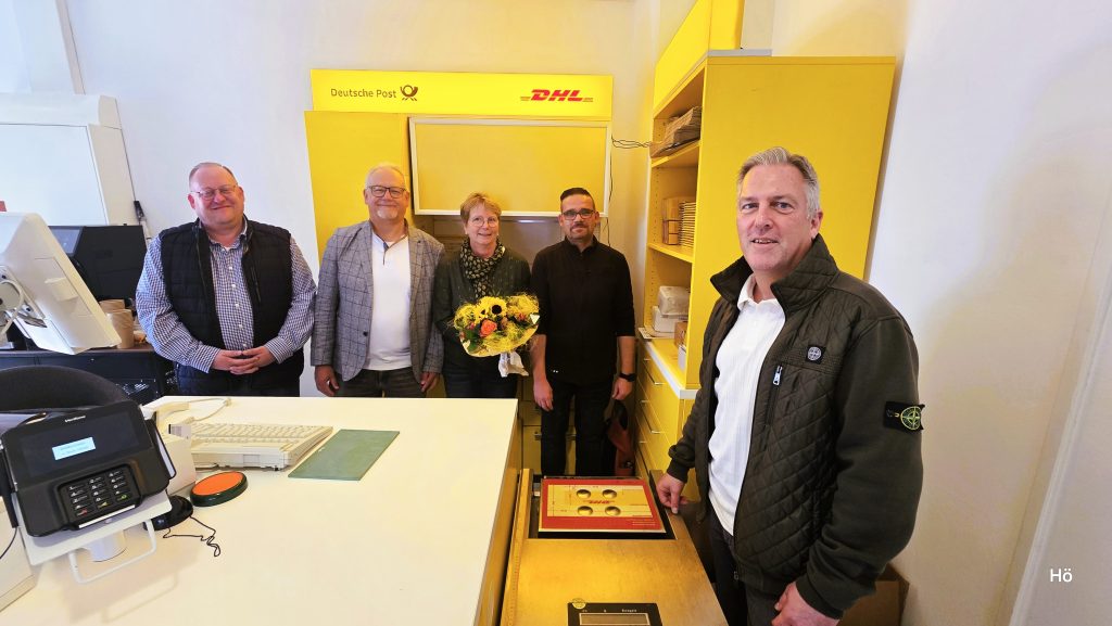 Sprockhövel – Am heutigen Mittwoch, 01. Oktober 2025, eröffnete die Postfiliale in Haßlinghausen am neuen Standort an der Mittelstraße 1. Wirtschaftförderer und stellvertretender Bürgermeister Oliver Tollnick überreichte zur Eröffnung einen Blumenstrauß, passend in der Farbe gelb der Post.