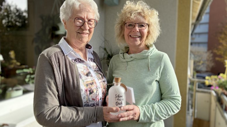 Mit den liebevoll gepackten Aufmerksamkeiten möchte das Seniorenbüro den Beginn der Adventszeit verschönern und ein Zeichen der Verbundenheit setzen. „Die Menschen freuen sich immer total. Viele wissen ja gar nicht, dass sie etwas bekommen oder von wem das Geschenk ist – da ist dann schon so manches Tränchen dabei,“ erzählt eine Mitarbeiterin des Seniorenbüros. Als Geschenk überreichten sie in diesem Jahr eine dekorative Flasche mit einer Lichterkette und der Aufschrift „Schön, dass es dich gibt“.