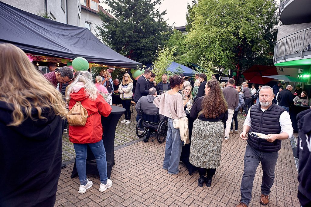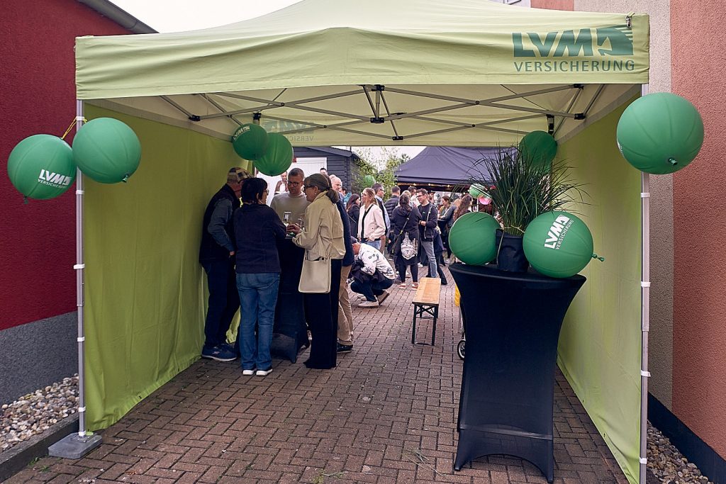 Das Wetter spielte mit, und zwischen Zelten, Bierzeltgarnituren, Stehtischen und Gartenbänken entwickelte sich schnell eine lockere, kommunikative Atmosphäre. Es war kaum möglich, den Hof zu durchqueren, ohne in ein Gespräch verwickelt zu werden – genau so, wie man es aus mediterranen Kleinstädten kennt.