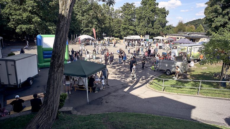 Der große Schulhof bot genügend Raum, sodass sich die vielen Besucher entspannt verteilen konnten. Kinder tobten über die Fläche, während die Erwachsenen Zeit für Gespräche fanden. Auch die ADFC Rikscha war vor Ort – wer eine Fahrt machte, hatte sichtlich Freude daran. Doch im ländlich geprägten Stadtteil ließ man sich lieber selbst treiben, als sich kutschieren zu lassen.
