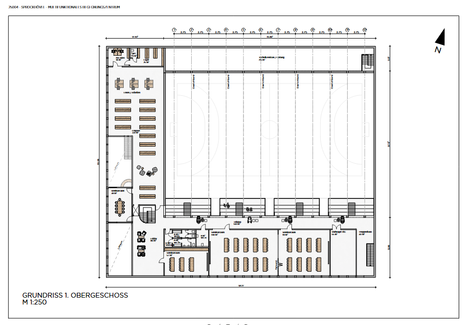 Die geplante neue Multifunktionshalle soll neben einer neuen Sporthalle für Schul- und Vereinssport auch Raum für soziale und kulturelle Veranstaltungen bieten. Zudem umfasst das Konzept die Umsiedlung der Stadtbücherei in dieses neue Gebäude.