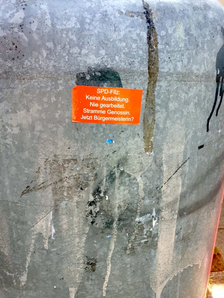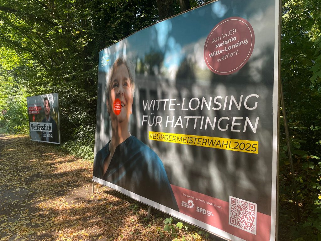 „Ein absoluter Tiefpunkt im Hattinger Wahlkampf, niveaulos und beleidigend. Auch die Aussagen auf diesen Aufklebern sind völlig falsch und verletzend. Wir haben natürlich diese Sachbeschädigung zur Anzeige gebracht“, äußert sich Bürgermeisterkandidatin Melanie Witte-Lonsing (SPD).