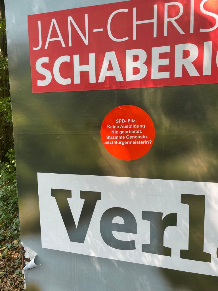 Mit solche Aufklebern zu versuchen, Frau Witte-Lonsing bezüglich ihrer fachlichen Qualifikation zu verunglimpfen ist schon eine geistige Meisterleistung, wenn man bedenkt, dass der andere Kandidat gerade mal 30 Jahre alt ist!